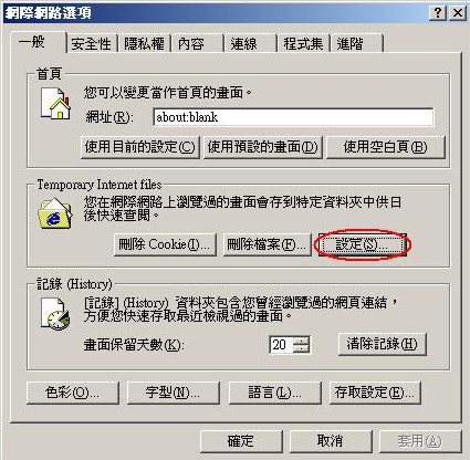 2. In the "Internet Options" window, click "Settings" button under "Temporary Internet File" in the "General" tab to open the settings window. |