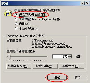 3. Set "Check for newer versions of stored pages:" as "Every time I visit the webpage", then click "OK" button. |