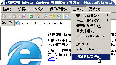1. Open IE browser, select "Tools" from the menu bar→ "Internet Options". |