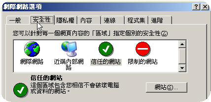 2. Open "Internet Options" window, select "Security" tab. |