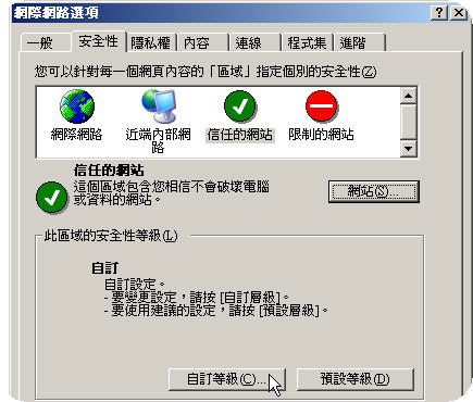 3. Select "Trusted sites". |