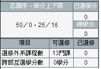 1. Information shown in this block contains "Student registration basic information", "Desired sequence and upper/lower limits of basic credits", "Credits registered", "Total credits".