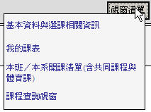 "Basic information and course registration related information", "My schedule", "Class/department course list", and "Course inquiry window".