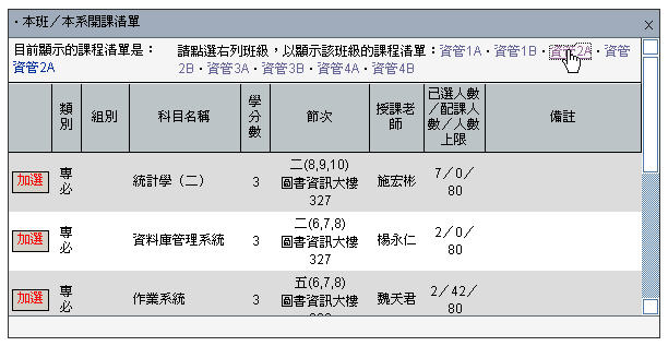 (2) Select a particular class in the class list, then it will display the list of courses offered in that class.